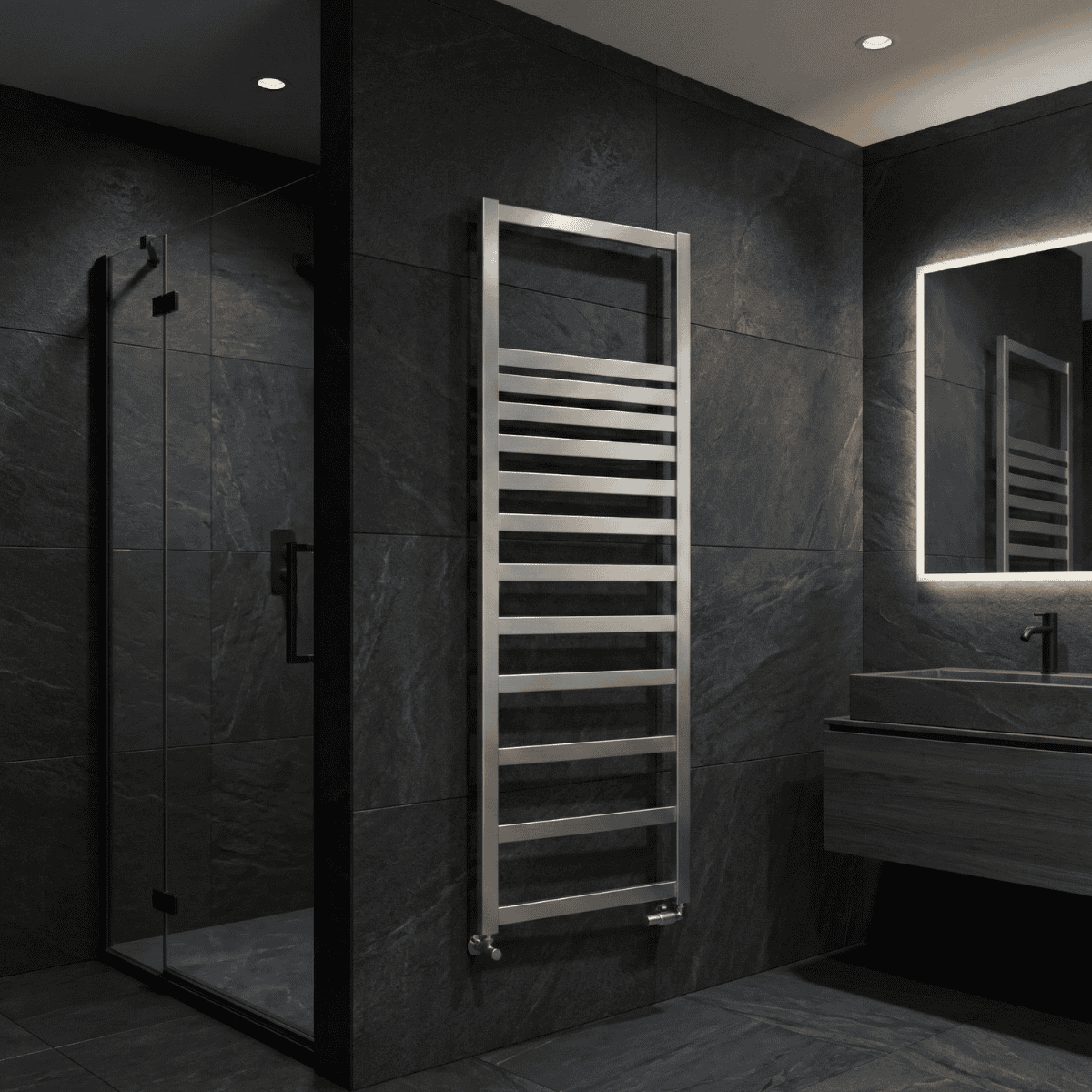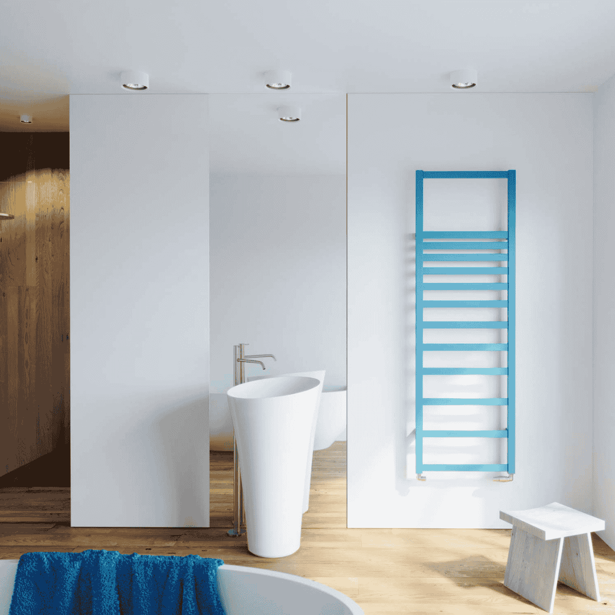 Grzejnik Revo to dowód na to, że nawet drabinkowy grzejnik może zaskakiwać formą. Jego projekt łamie tradycyjne schematy, układając poziome, płaskie profile w sposób, który tworzy dynamiczny i niepowtarzalny wzór. To nie tylko wydajne źródło ciepła, ale także rzeźbiarski akcent, który podkreśla nowoczesny charakter łazienki. Revo to grzejnik dekoracyjny, idealny wybór dla tych, którzy chcą, aby nawet pozornie zwykły element wyposażenia stał się dziełem sztuki.