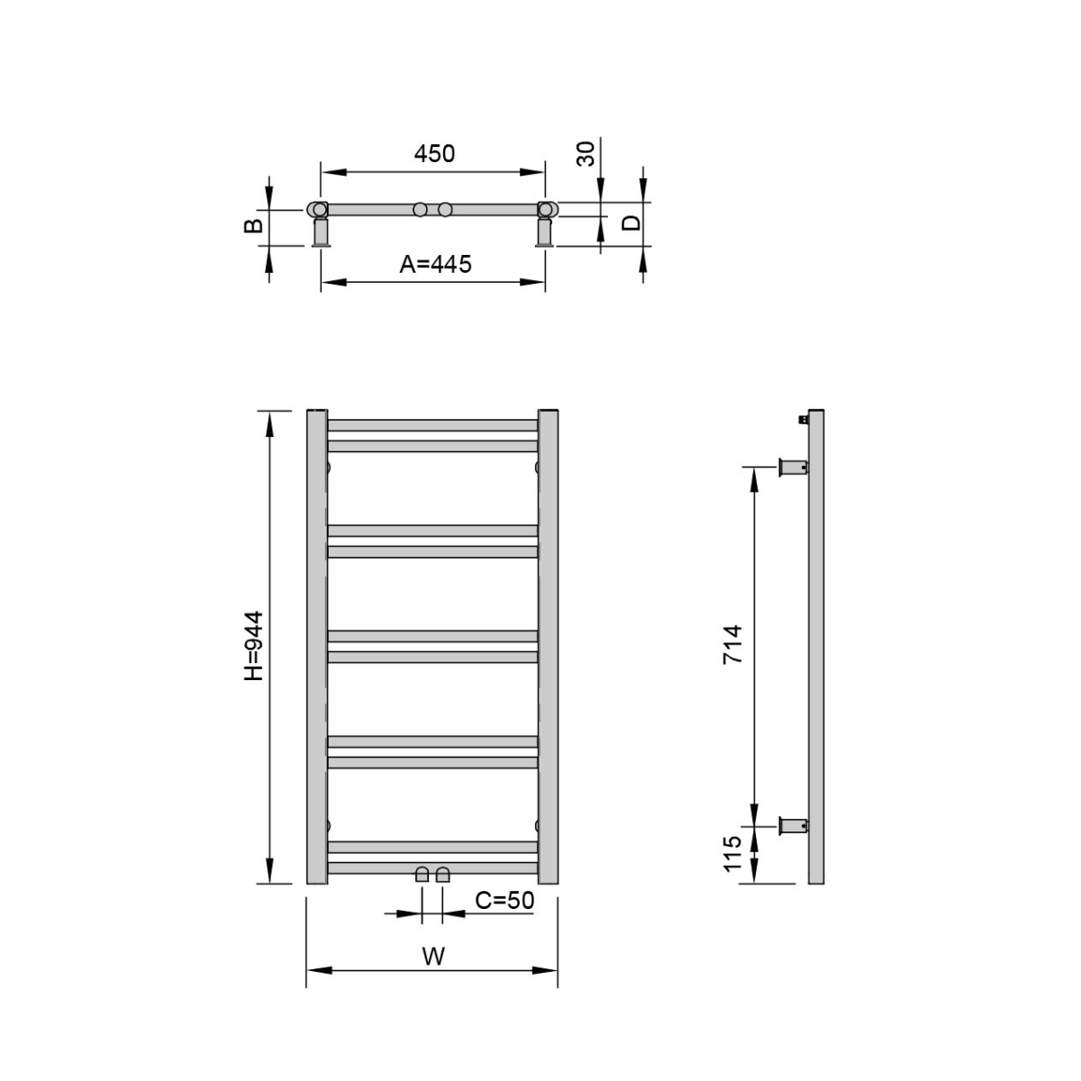 | Typ | Szerokość [mm] | Wysokość [mm] | Głębokość [mm] | Rozstaw przyłączy [mm] | Moc (75/65/20) [W] | Moc (55/45/20) [W] | Max moc grzałki [W] |